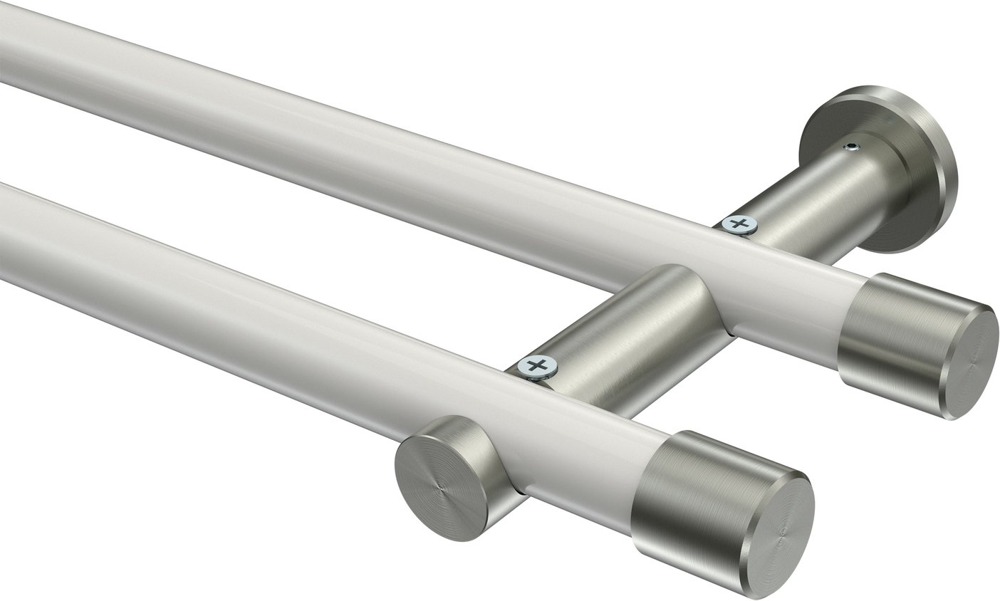 Informationen zu Gardinenstange Metall 20 mm Ø 2-läufig PLATON - Santo Weiß / Edelstahl-Optik (ohne Ringe):