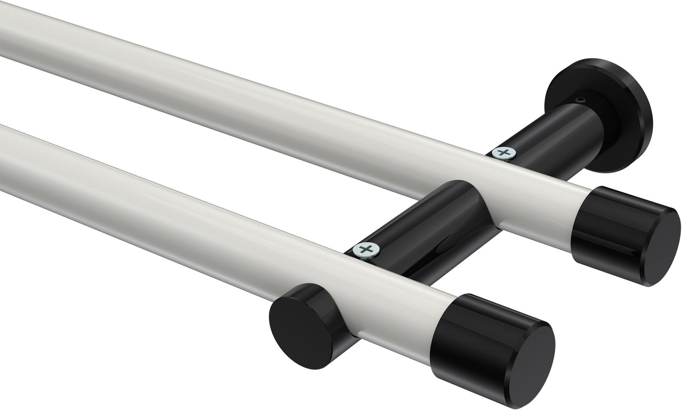 Gardinenstangen aus Metall in 20 mm Ø, 2-läufig, Modell PLATON - Santo Weiß / Schwarz (ohne Ringe)