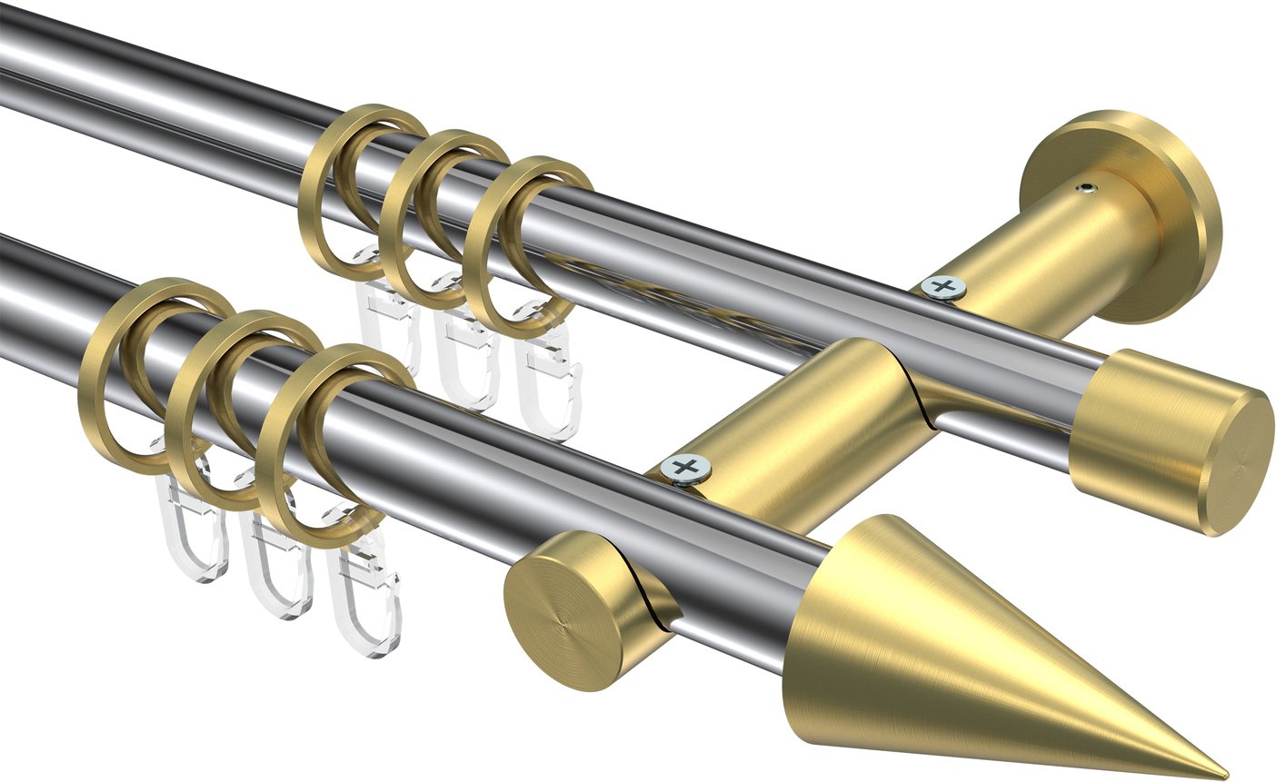 Gardinenstangen aus Metall in 20 mm Ø, 2-läufig, Modell PLATON - Savio Chrom / Messing-Optik
