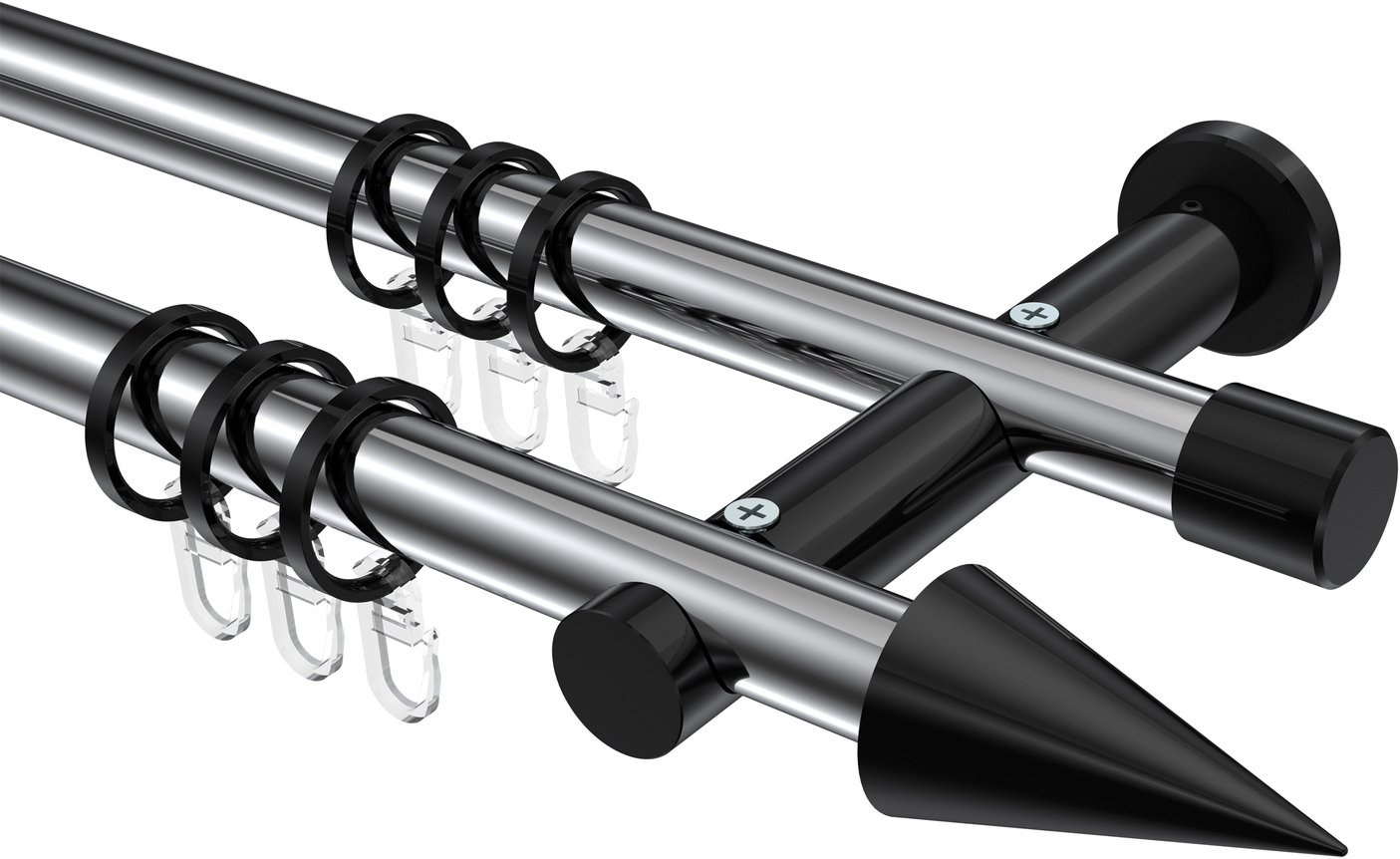 Gardinenstangen aus Metall in 20 mm Ø, 2-läufig, Modell PLATON - Savio Chrom / Schwarz
