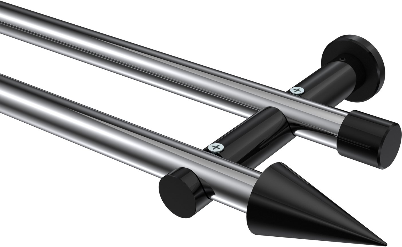 Informationen zu Gardinenstange Metall 20 mm Ø 2-läufig PLATON - Savio Chrom / Schwarz (ohne Ringe):