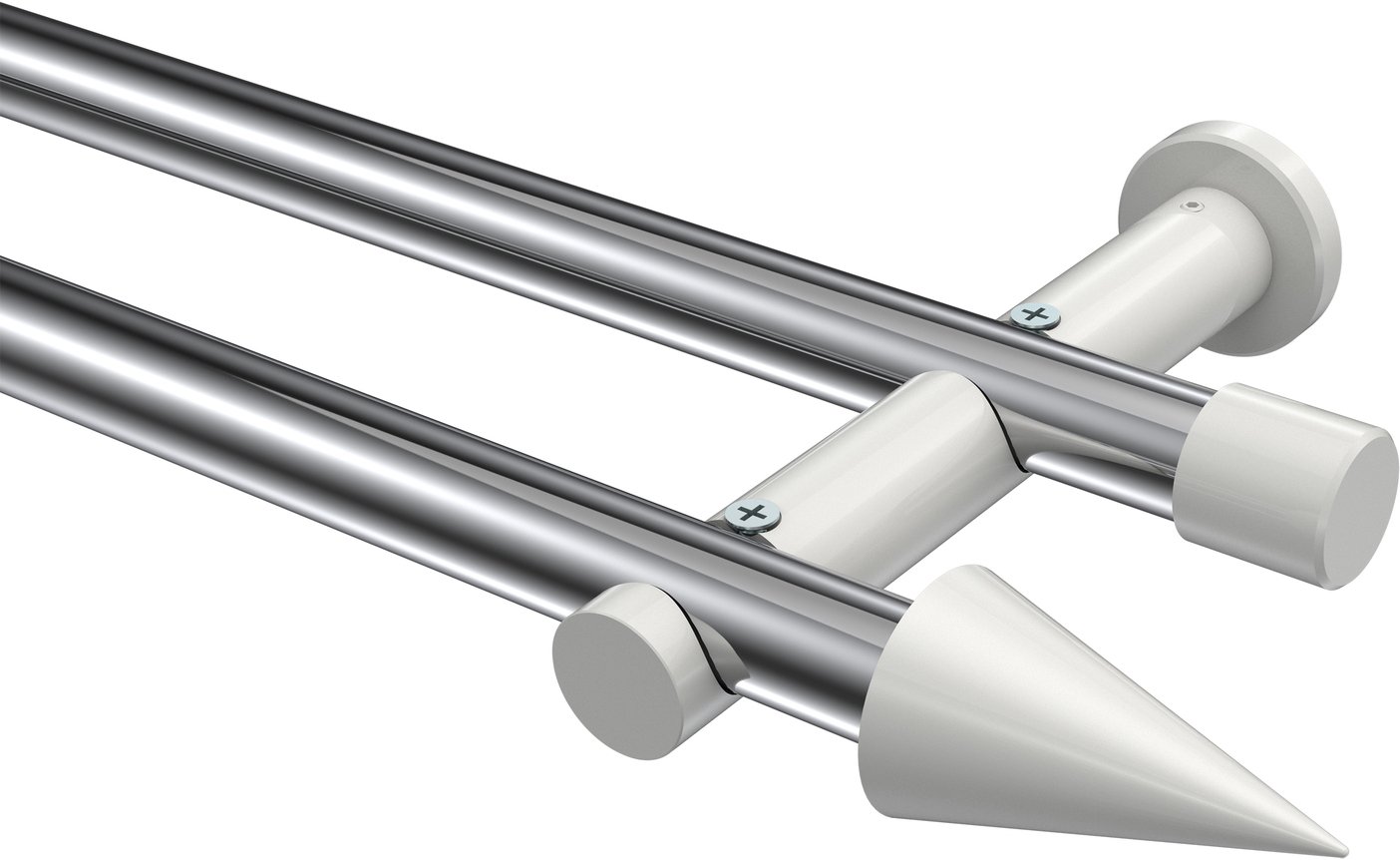 Informationen zu Gardinenstange Metall 20 mm Ø 2-läufig PLATON - Savio Chrom / Weiß (ohne Ringe):