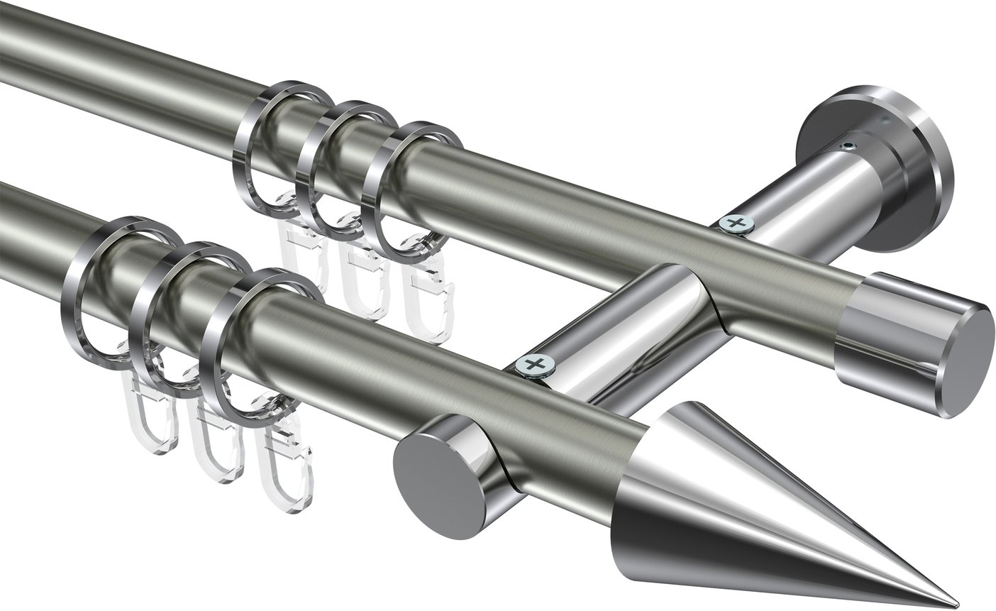 Gardinenstangen aus Metall in 20 mm Ø, 2-läufig, Modell PLATON - Savio Edelstahl-Optik / Chrom