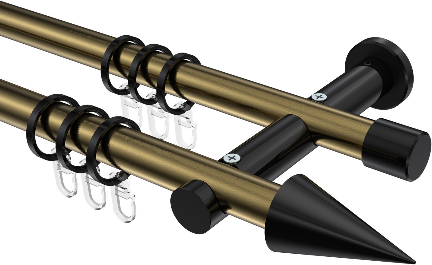 Informationen zu Gardinenstange Metall 20 mm Ø 2-läufig PLATON - Savio Messing Antik / Schwarz: