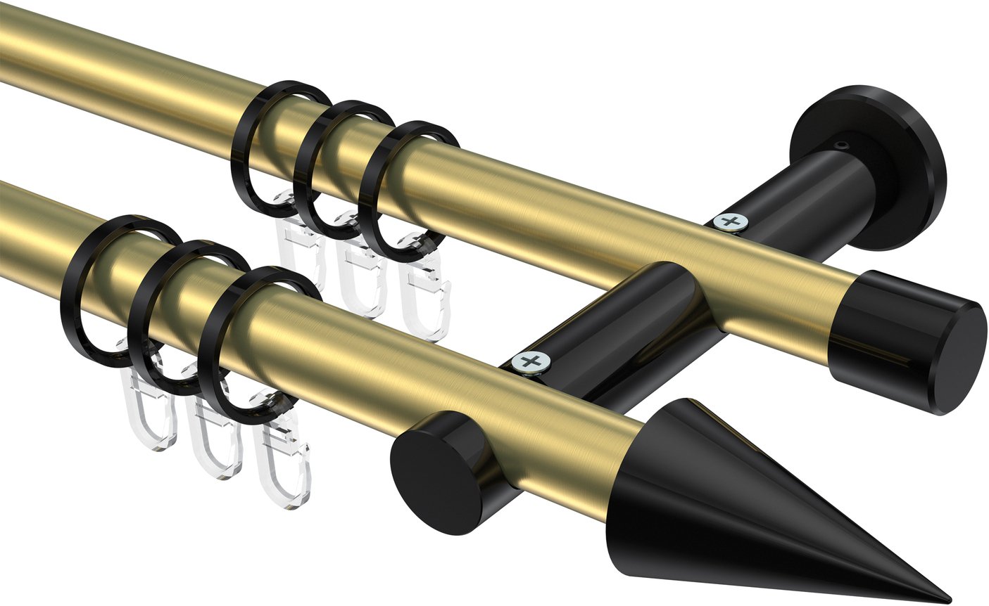 Informationen zu Gardinenstange Metall 20 mm Ø 2-läufig PLATON - Savio Messing-Optik / Schwarz: