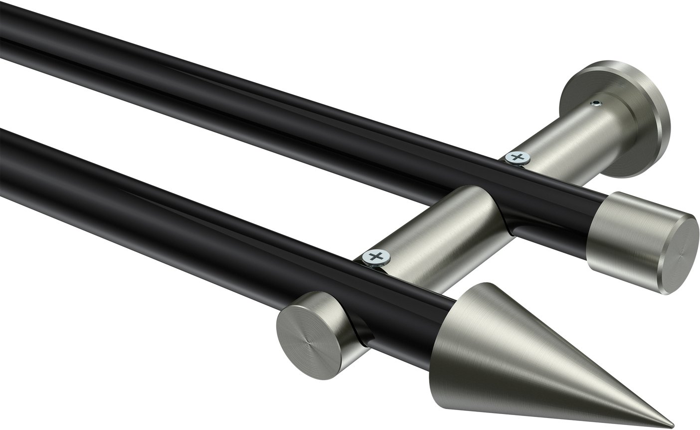 Informationen zu Gardinenstange Metall 20 mm Ø 2-läufig PLATON - Savio Schwarz / Edelstahl-Optik (ohne Ringe):