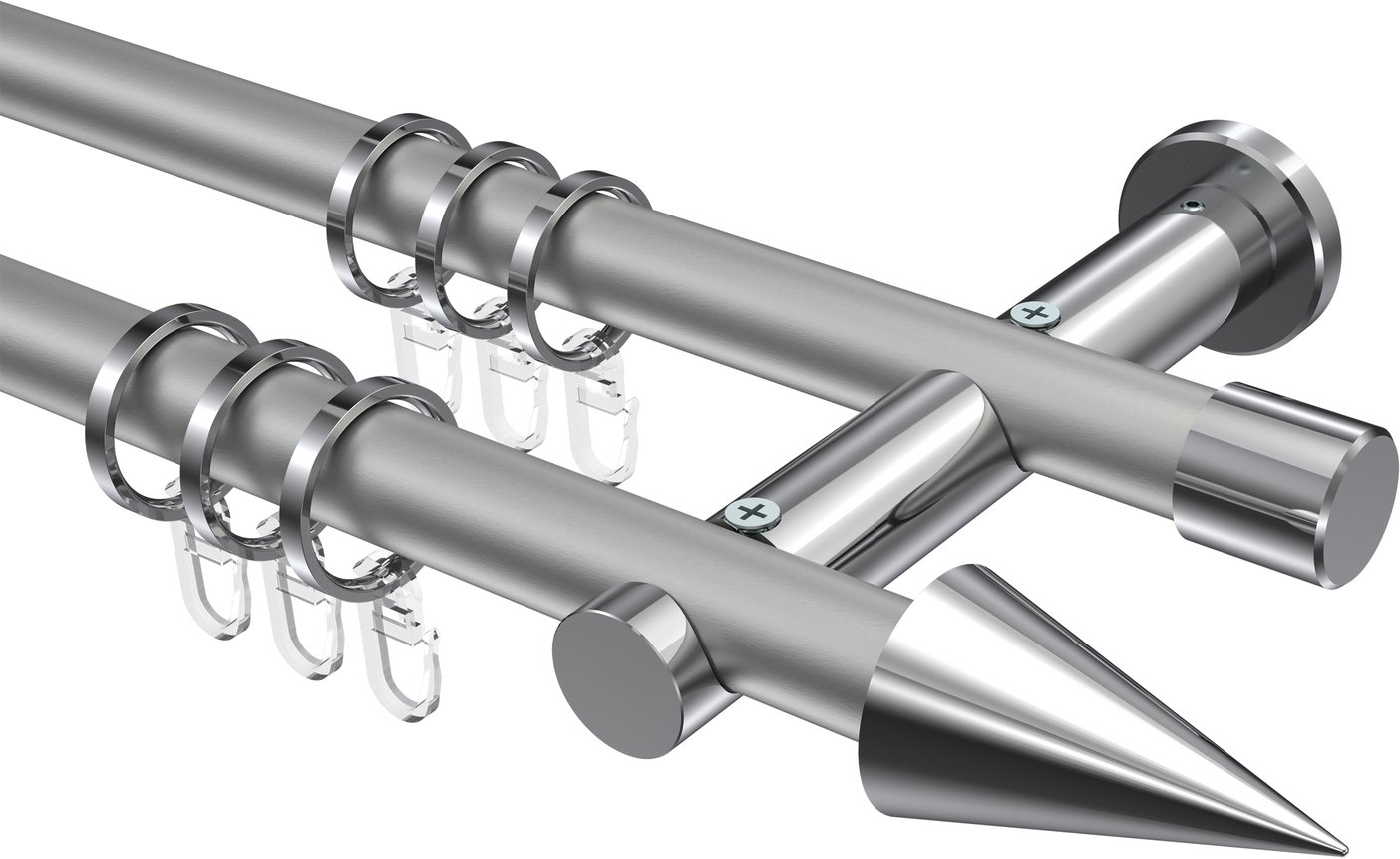 Gardinenstangen aus Metall in 20 mm Ø, 2-läufig, Modell PLATON - Savio Silbergrau / Chrom