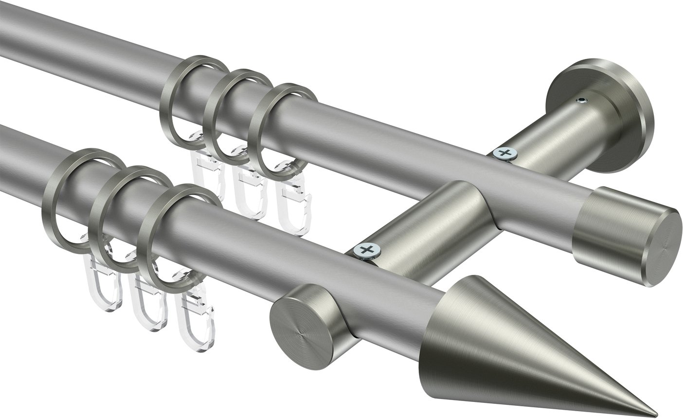 Informationen zu Gardinenstange Metall 20 mm Ø 2-läufig PLATON - Savio Silbergrau / Edelstahl-Optik: