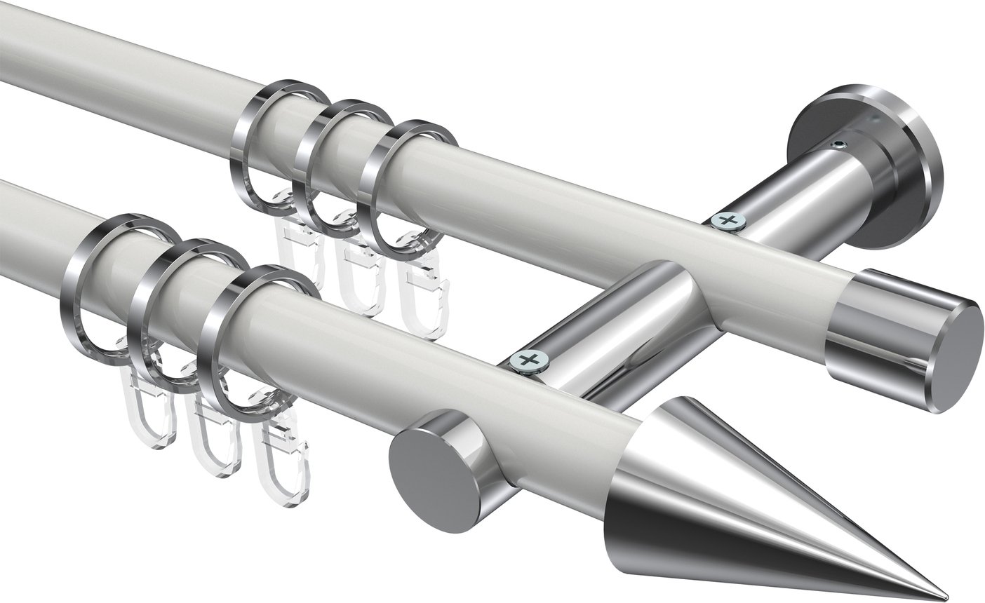 Gardinenstangen aus Metall in 20 mm Ø, 2-läufig, Modell PLATON - Savio Weiß / Chrom