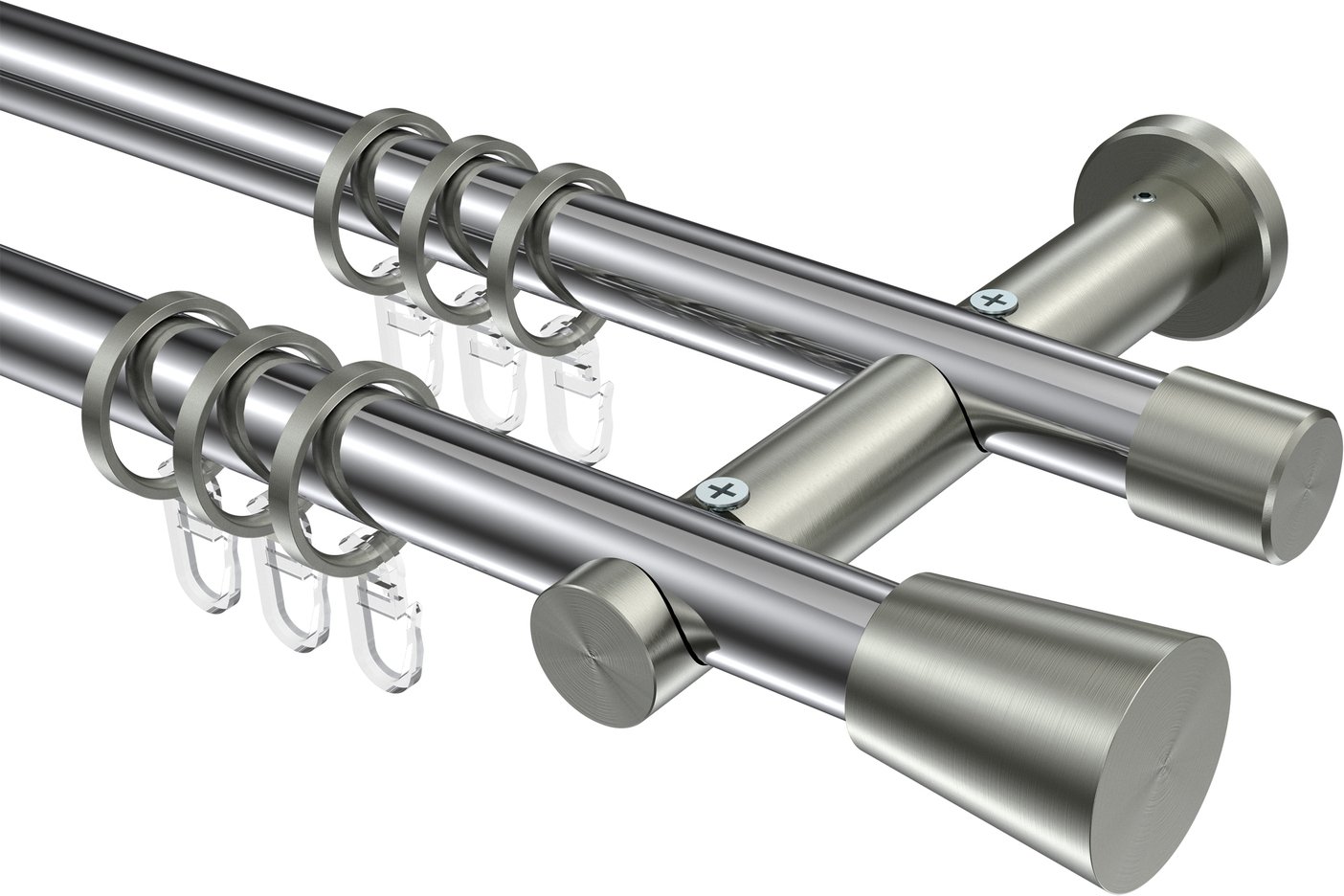 Gardinenstangen aus Metall in 20 mm Ø, 2-läufig, Modell PLATON - Sitra Chrom / Edelstahl-Optik