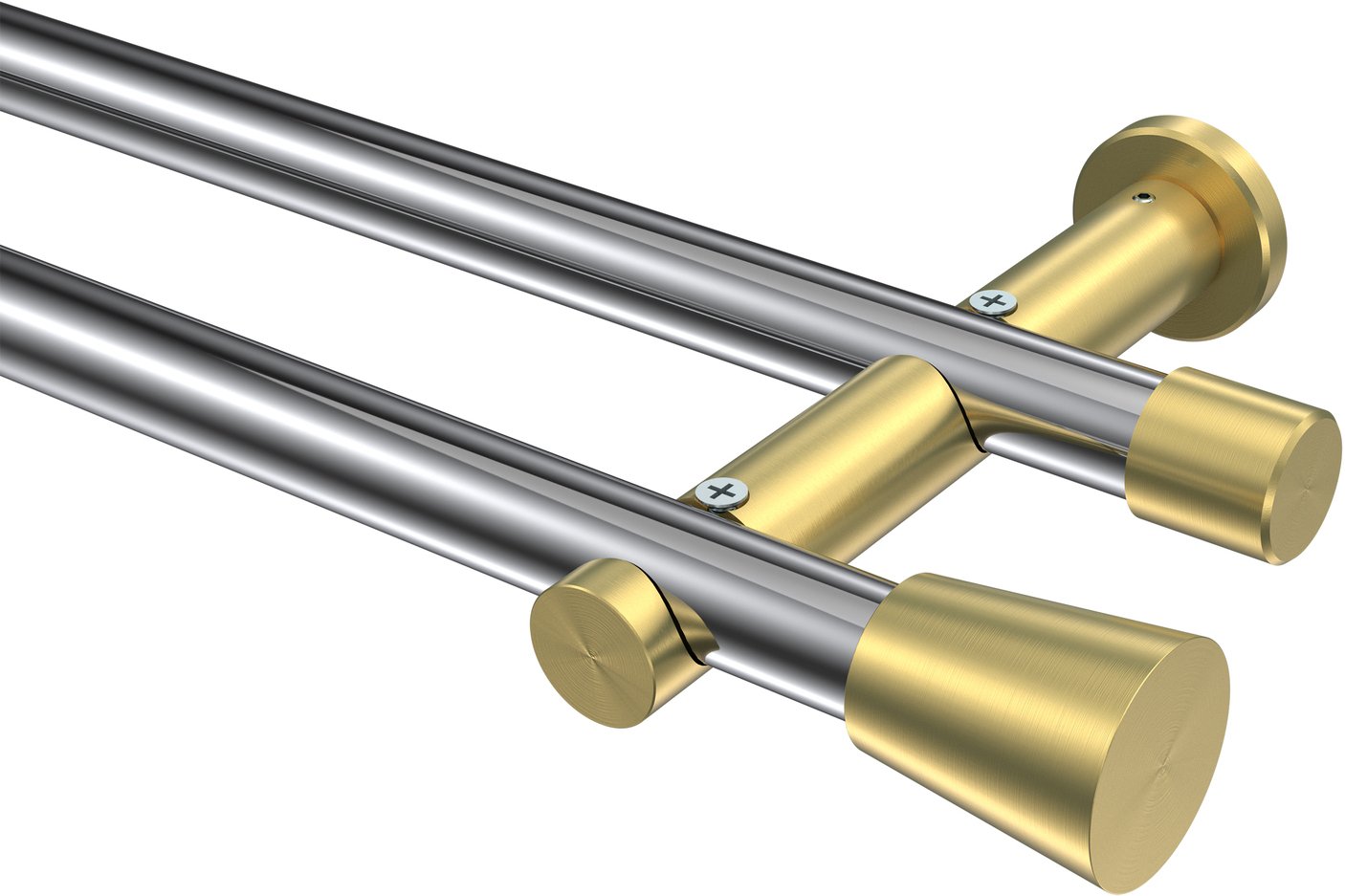 Gardinenstangen aus Metall in 20 mm Ø, 2-läufig, Modell PLATON - Sitra Chrom / Messing-Optik (ohne Ringe)
