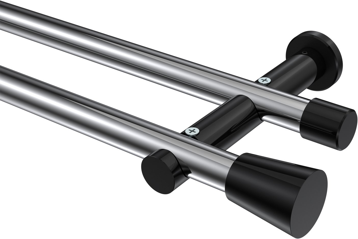 Informationen zu Gardinenstange Metall 20 mm Ø 2-läufig PLATON - Sitra Chrom / Schwarz (ohne Ringe):