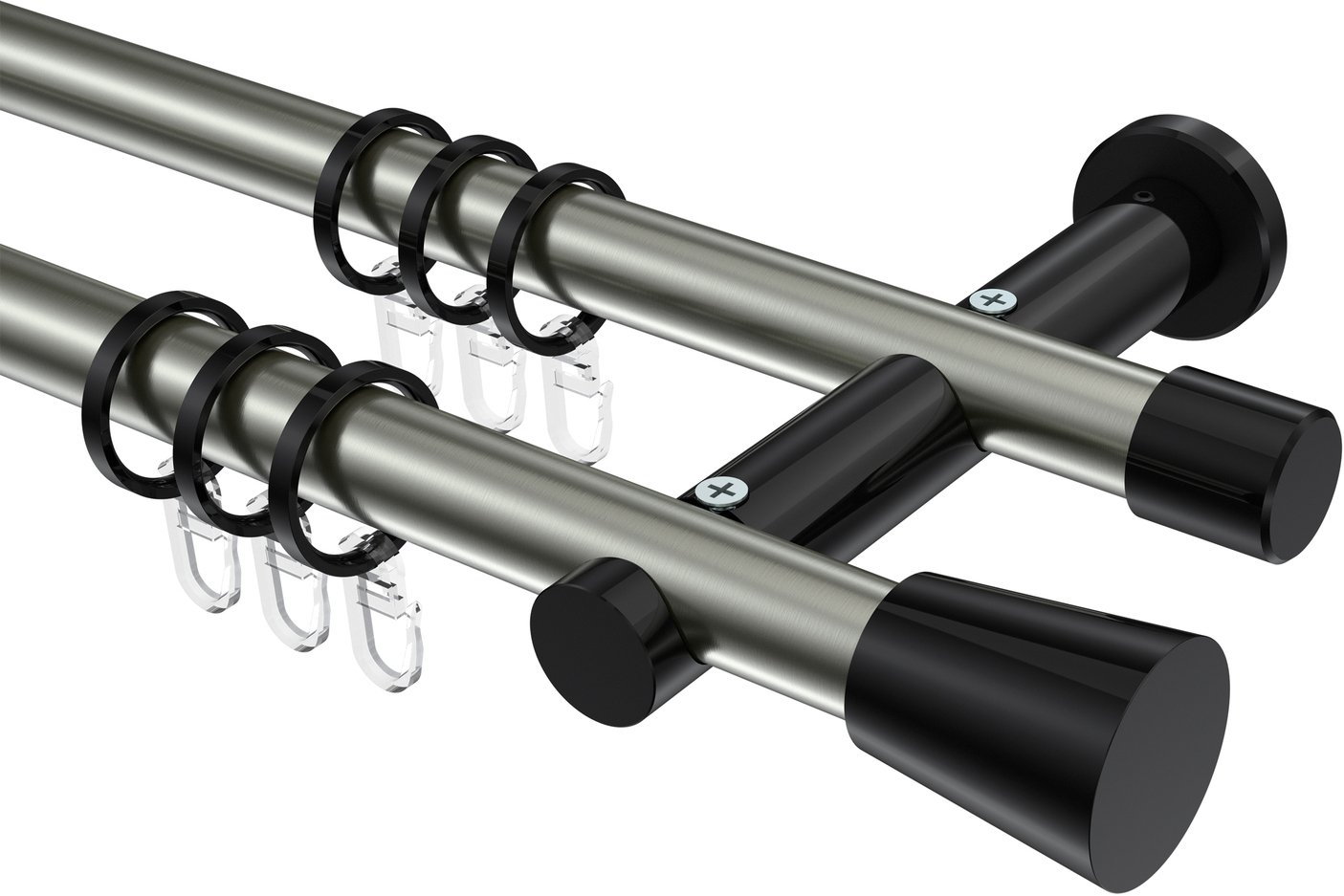 Informationen zu Gardinenstange Metall 20 mm Ø 2-läufig PLATON - Sitra Edelstahl-Optik / Schwarz: