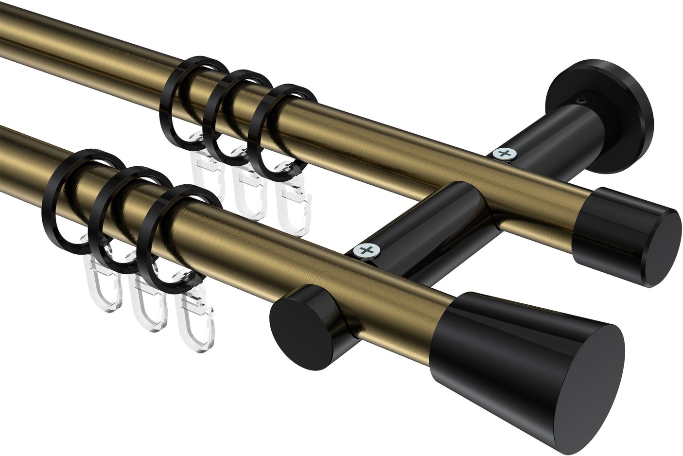 Gardinenstangen aus Metall in 20 mm Ø, 2-läufig, Modell PLATON - Sitra Messing Antik / Schwarz