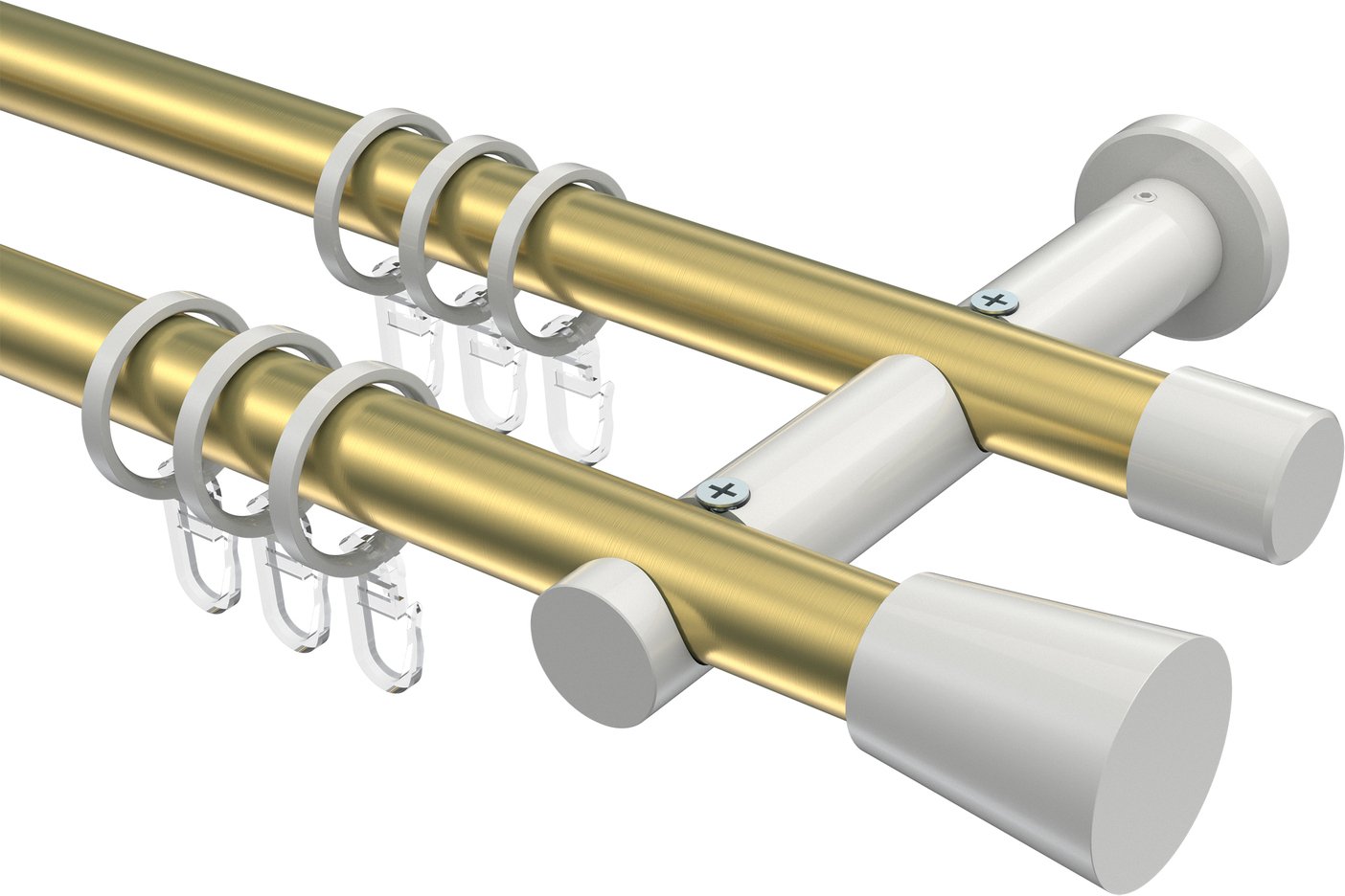 Gardinenstangen aus Metall in 20 mm Ø, 2-läufig, Modell PLATON - Sitra Messing-Optik / Weiß