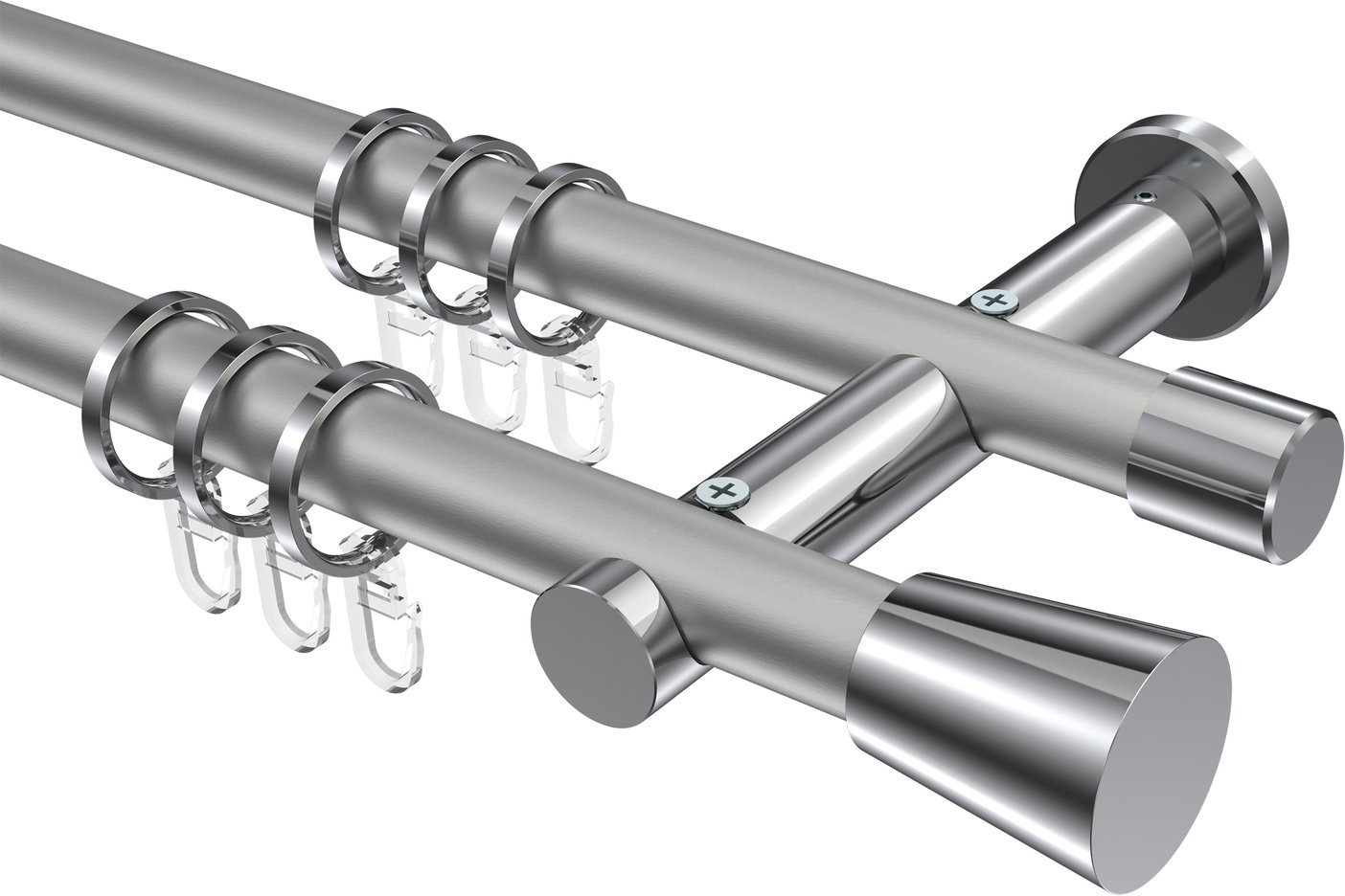 Gardinenstangen aus Metall in 20 mm Ø, 2-läufig, Modell PLATON - Sitra Silbergrau / Chrom
