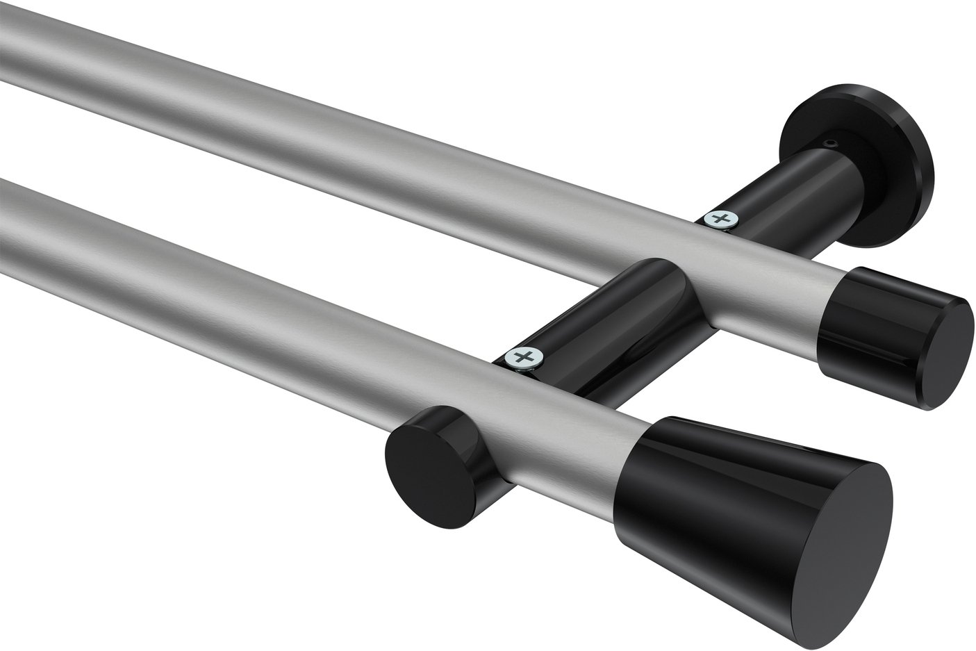 Informationen zu Gardinenstange Metall 20 mm Ø 2-läufig PLATON - Sitra Silbergrau / Schwarz (ohne Ringe):