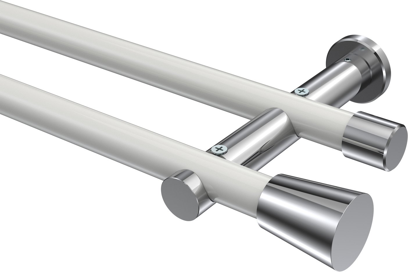 Gardinenstangen aus Metall in 20 mm Ø, 2-läufig, Modell PLATON - Sitra Weiß / Chrom (ohne Ringe)