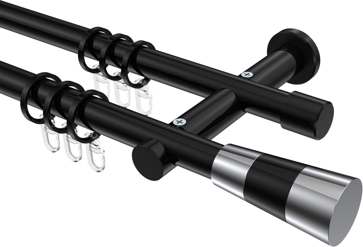 Gardinenstangen aus Metall in 20 mm Ø, 2-läufig, Modell PLATON - Tanara Schwarz