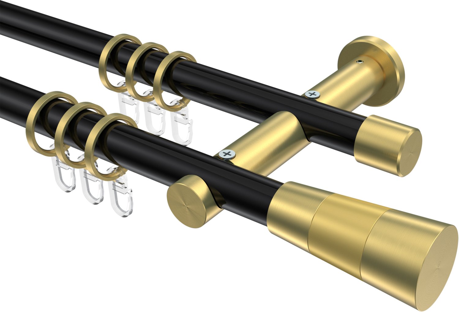 Informationen zu Gardinenstange Metall 20 mm Ø 2-läufig PLATON - Tanara Schwarz / Messing-Optik: