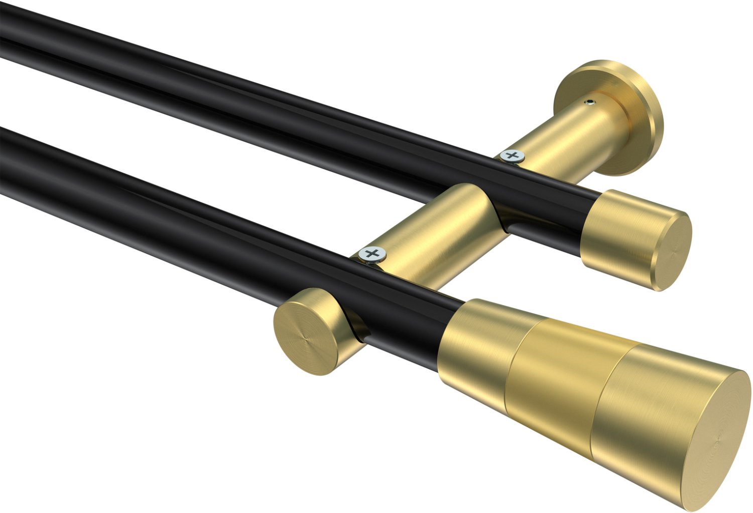 Informationen zu Gardinenstange Metall 20 mm Ø 2-läufig PLATON - Tanara Schwarz / Messing-Optik (ohne Ringe):