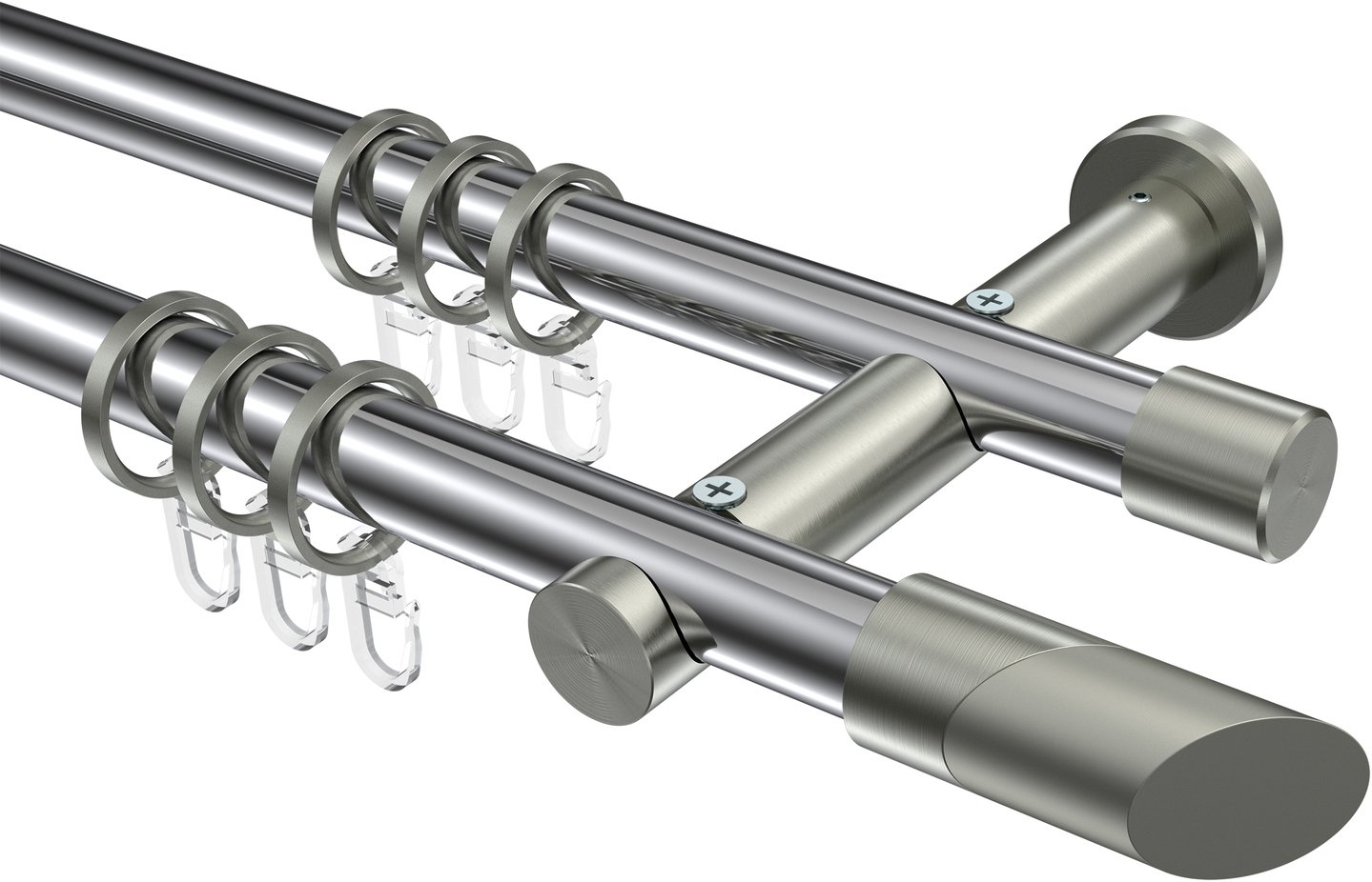 Gardinenstangen aus Metall in 20 mm Ø, 2-läufig, Modell PLATON - Verano Chrom / Edelstahl-Optik