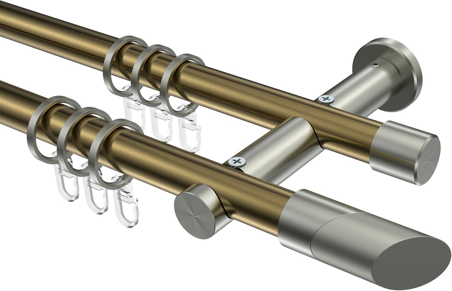 Gardinenstangen aus Metall in 20 mm Ø, 2-läufig, Modell PLATON - Verano Messing Antik / Edelstahl-Optik