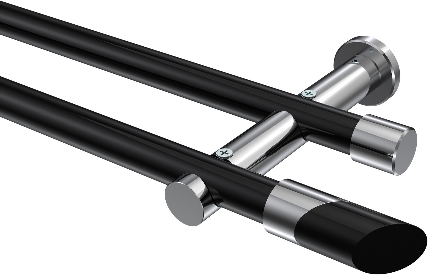 Gardinenstangen aus Metall in 20 mm Ø, 2-läufig, Modell PLATON - Verano Schwarz / Chrom (ohne Ringe)
