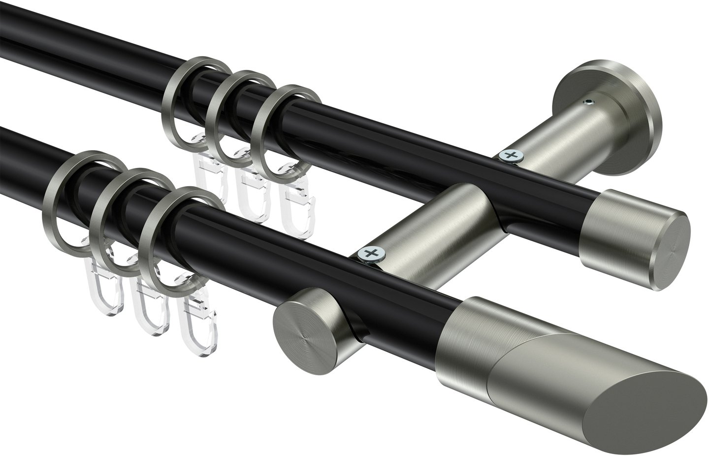 Informationen zu Gardinenstange Metall 20 mm Ø 2-läufig PLATON - Verano Schwarz / Edelstahl-Optik: