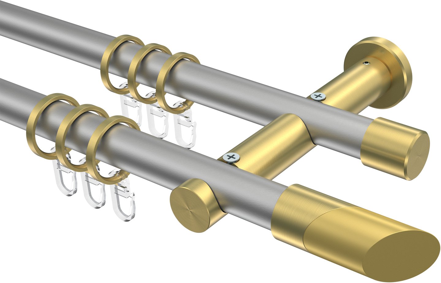 Gardinenstangen aus Metall in 20 mm Ø, 2-läufig, Modell PLATON - Verano Silbergrau / Messing-Optik