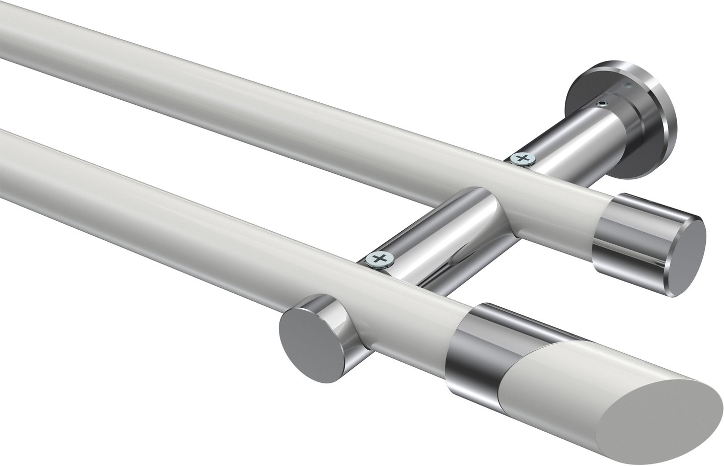 Gardinenstangen aus Metall in 20 mm Ø, 2-läufig, Modell PLATON - Verano Weiß / Chrom (ohne Ringe)