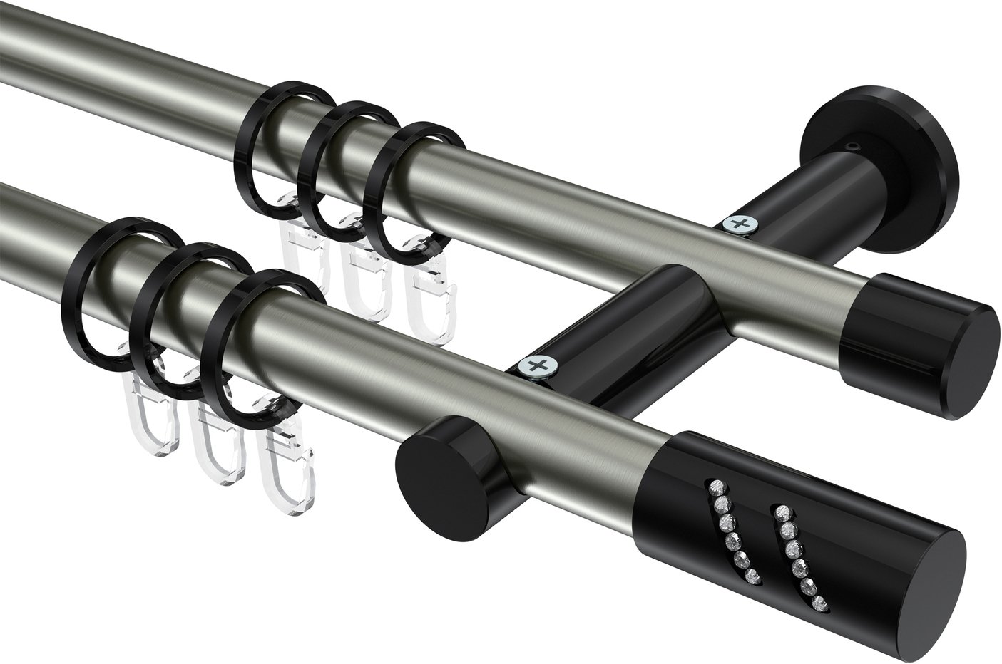 Gardinenstangen aus Metall in 20 mm Ø, 2-läufig, Modell PLATON - Zoena Edelstahl-Optik / Schwarz
