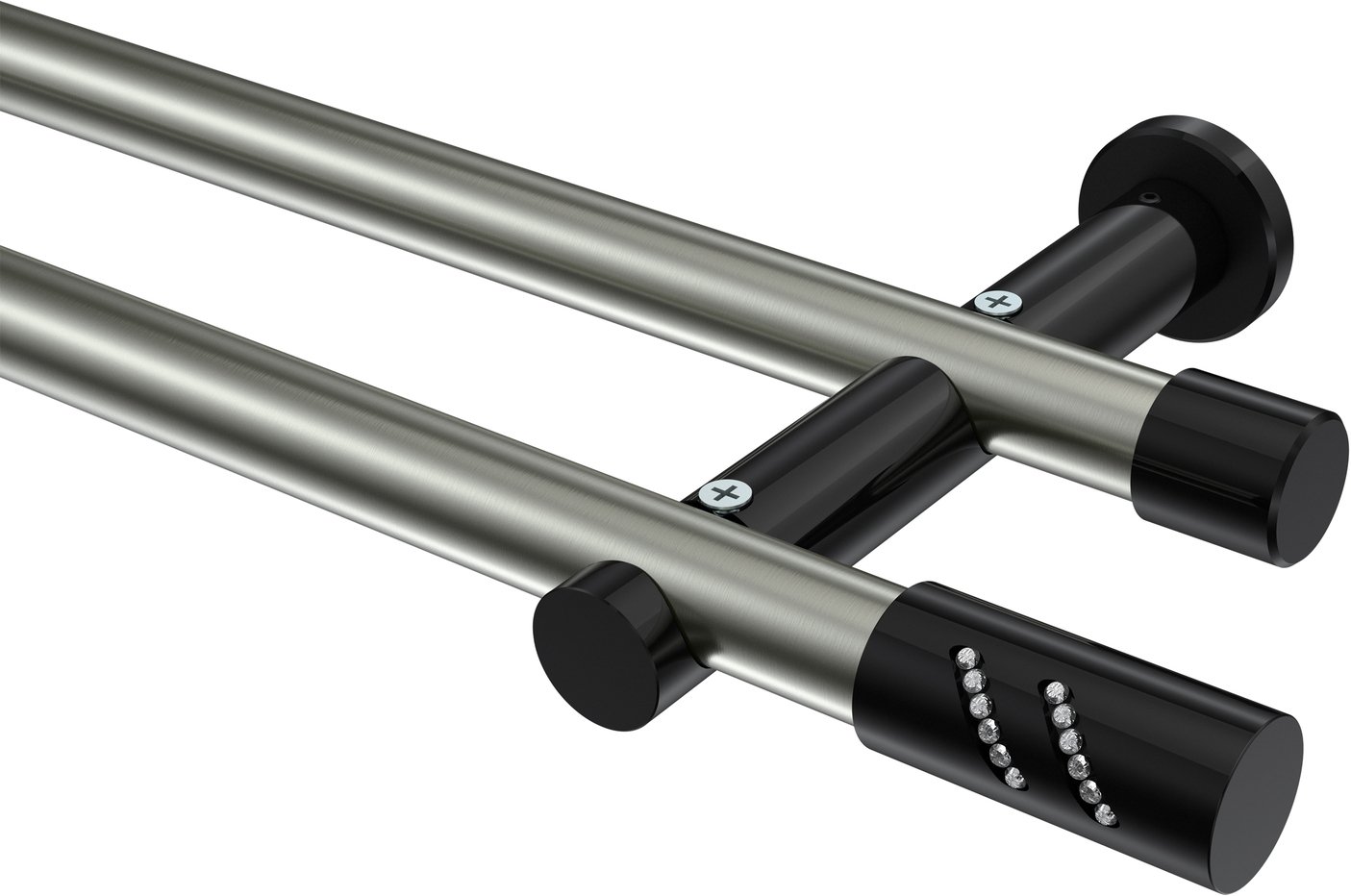 Gardinenstangen aus Metall in 20 mm Ø, 2-läufig, Modell PLATON - Zoena Edelstahl-Optik / Schwarz (ohne Ringe)