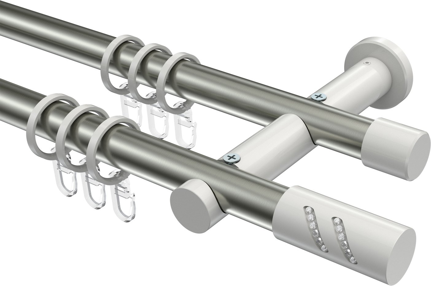Gardinenstangen aus Metall in 20 mm Ø, 2-läufig, Modell PLATON - Zoena Edelstahl-Optik / Weiß