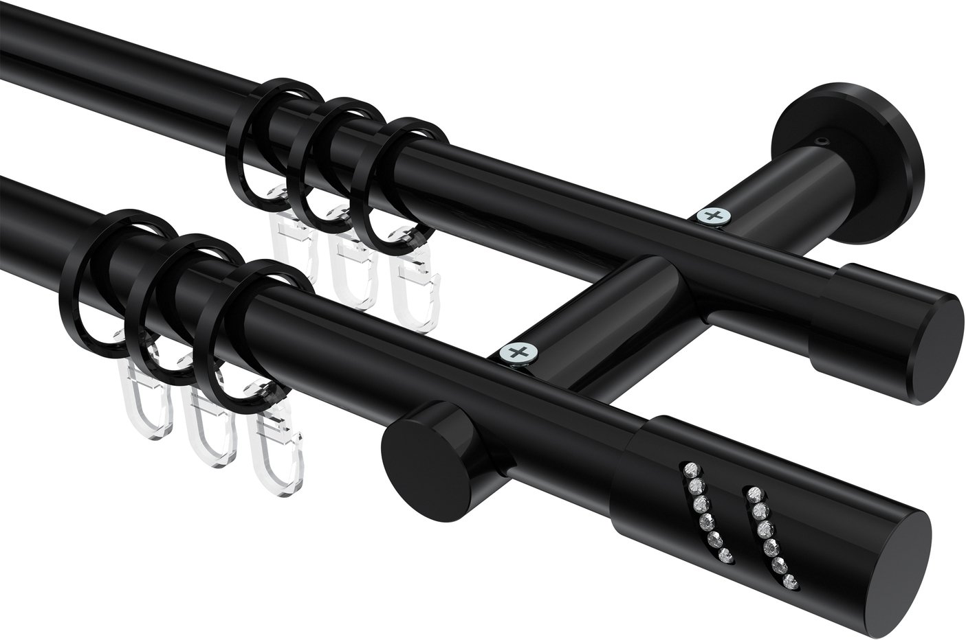 Gardinenstangen aus Metall in 20 mm Ø, 2-läufig, Modell PLATON - Zoena Schwarz