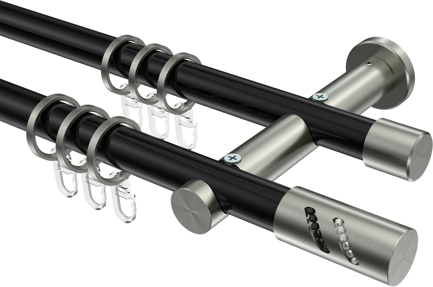 Gardinenstangen aus Metall in 20 mm Ø, 2-läufig, Modell PLATON - Zoena Schwarz / Edelstahl-Optik