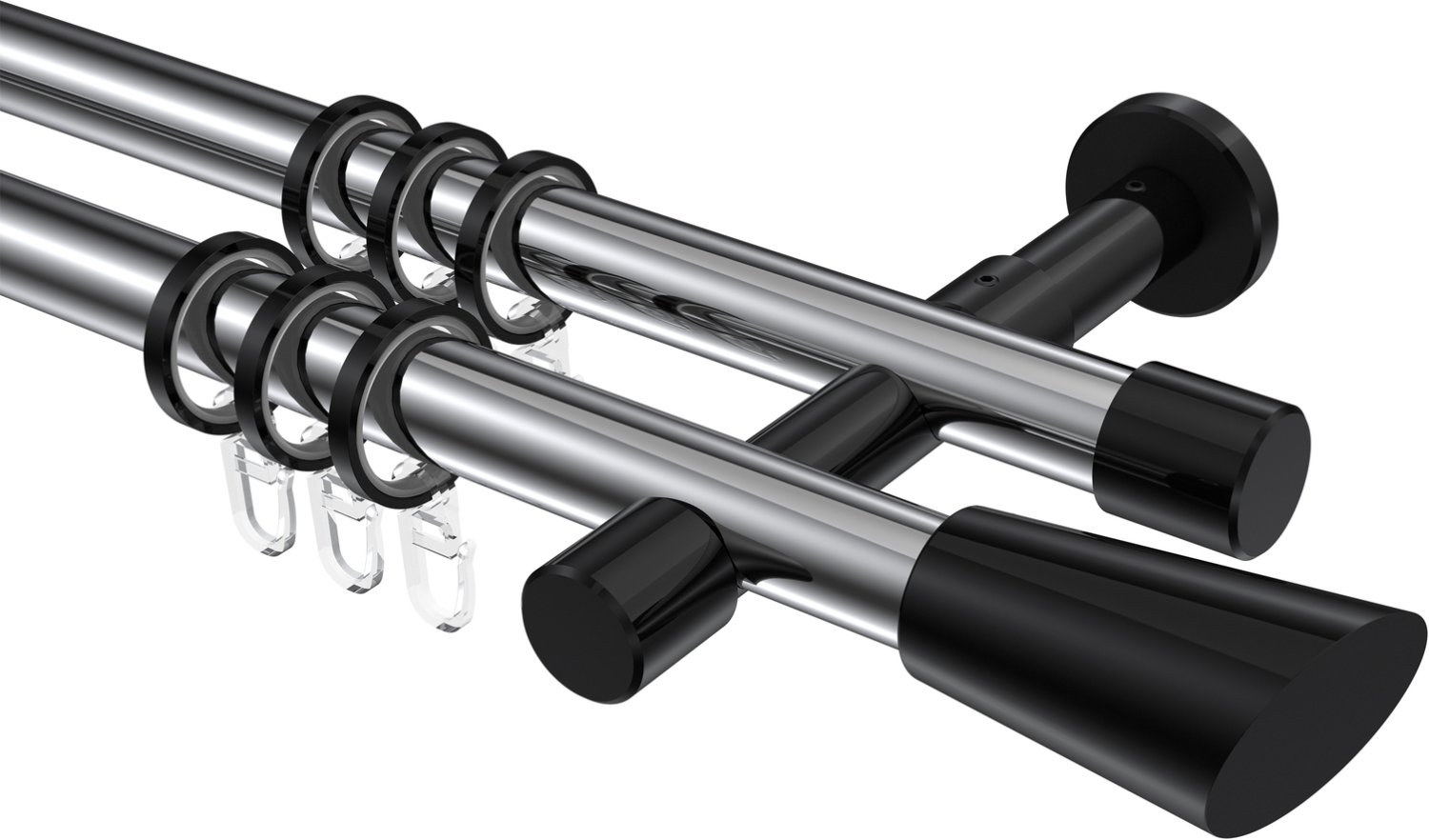 Gardinenstangen aus Metall in 20 mm Ø, 2-läufig, Modell PRESTIGE - Bento Chrom / Schwarz
