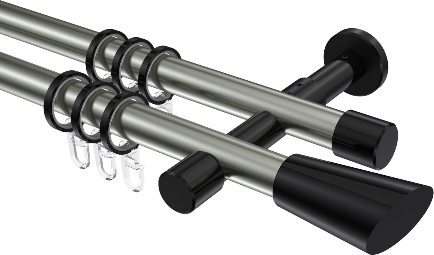 Informationen zu Gardinenstange Metall 20 mm Ø 2-läufig PRESTIGE - Bento Edelstahl-Optik / Schwarz: