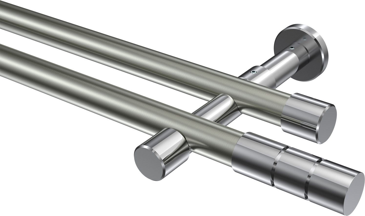 Informationen zu Gardinenstange Metall 20 mm Ø 2-läufig PRESTIGE - Elanto Edelstahl-Optik / Chrom (ohne Ringe):