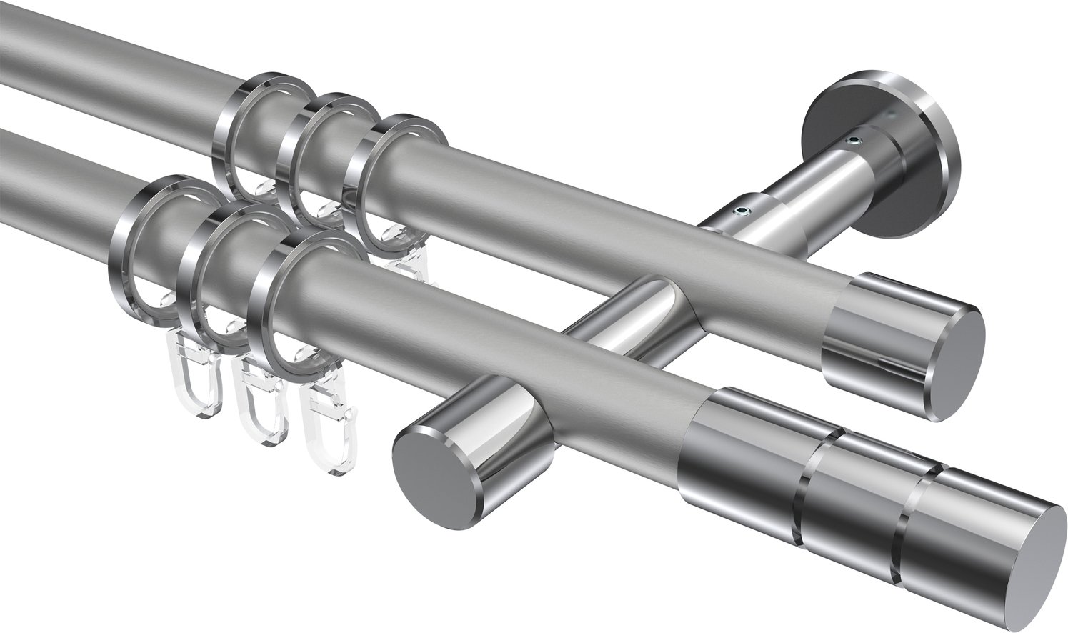 Gardinenstangen aus Metall in 20 mm Ø, 2-läufig, Modell PRESTIGE - Elanto Silbergrau / Chrom