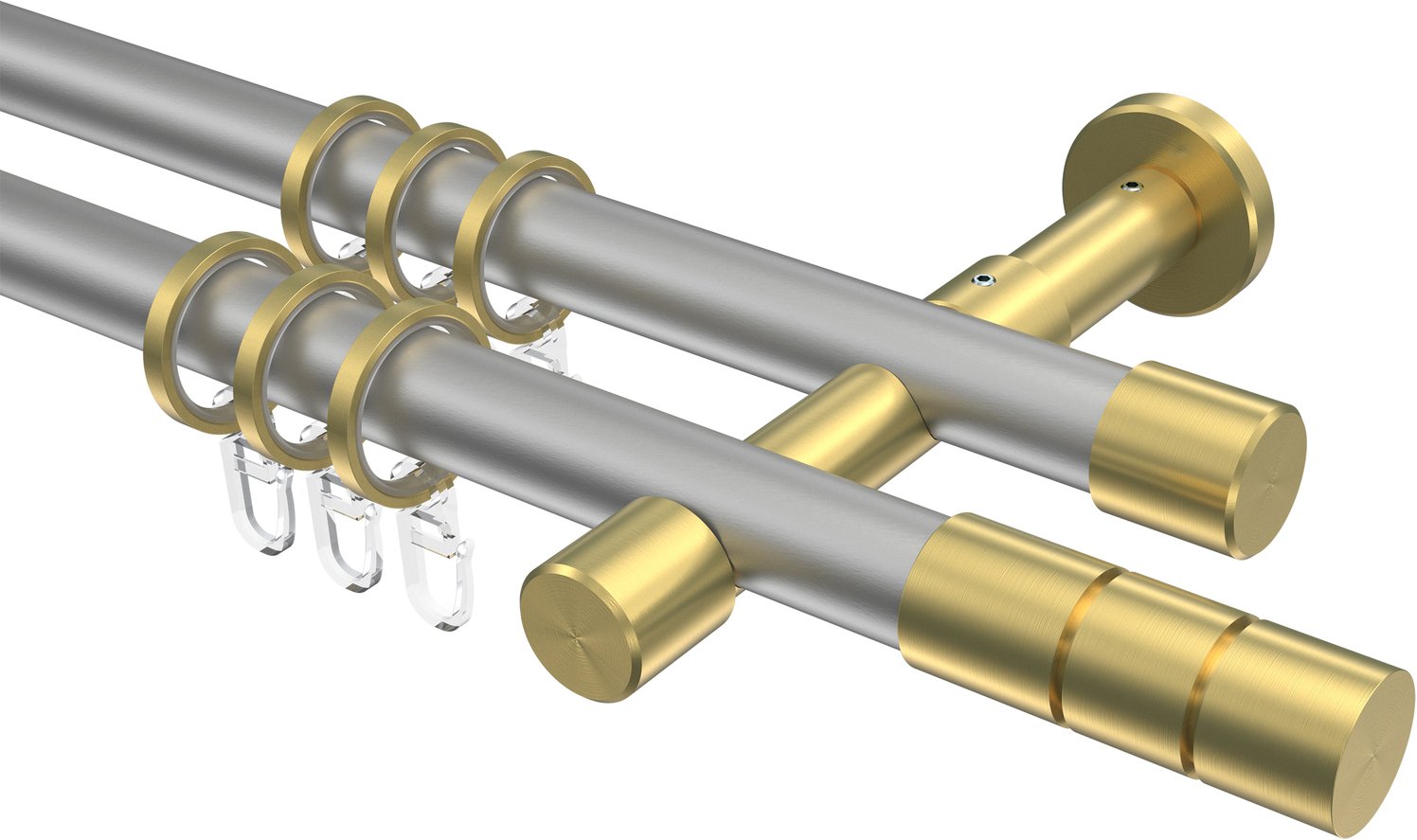 Informationen zu Gardinenstange Metall 20 mm Ø 2-läufig PRESTIGE - Elanto Silbergrau / Messing-Optik: