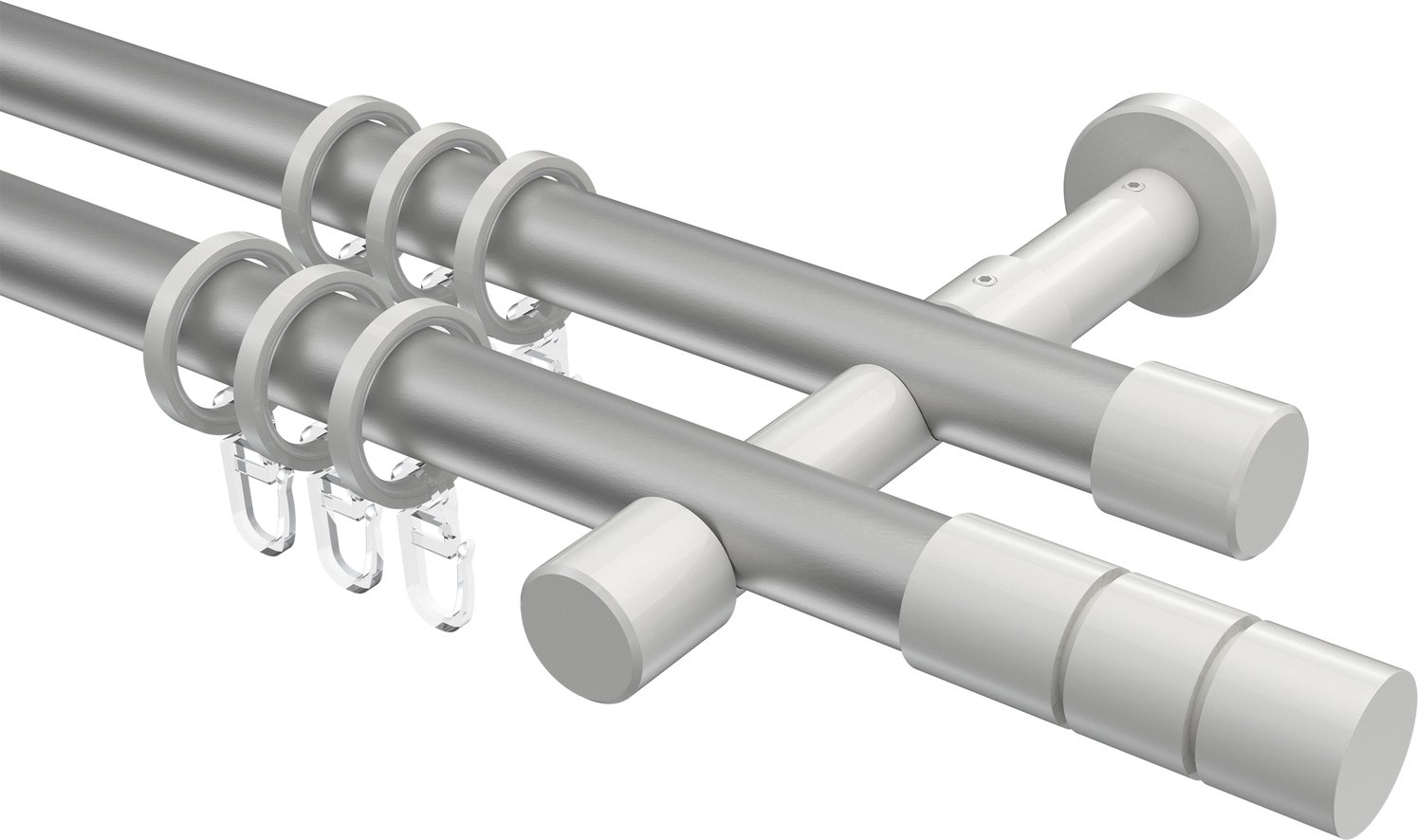 Gardinenstangen aus Metall in 20 mm Ø, 2-läufig, Modell PRESTIGE - Elanto Silbergrau / Weiß