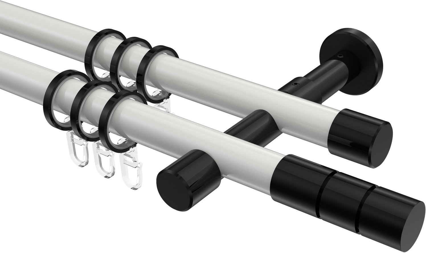 Gardinenstangen aus Metall in 20 mm Ø, 2-läufig, Modell PRESTIGE - Elanto Weiß / Schwarz