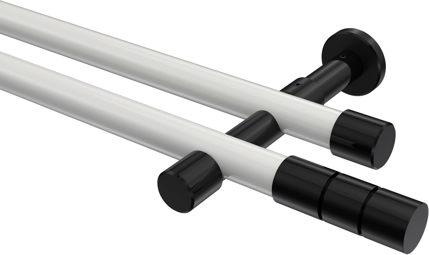 Gardinenstangen aus Metall in 20 mm Ø, 2-läufig, Modell PRESTIGE - Elanto Weiß / Schwarz (ohne Ringe)