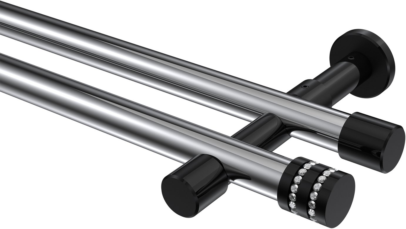 Informationen zu Gardinenstange Metall 20 mm Ø 2-läufig PRESTIGE - Estana Chrom / Schwarz (ohne Ringe):