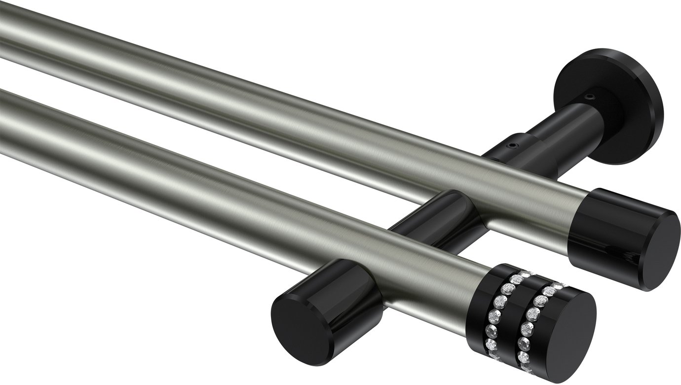 Informationen zu Gardinenstange Metall 20 mm Ø 2-läufig PRESTIGE - Estana Edelstahl-Optik / Schwarz (ohne Ringe):