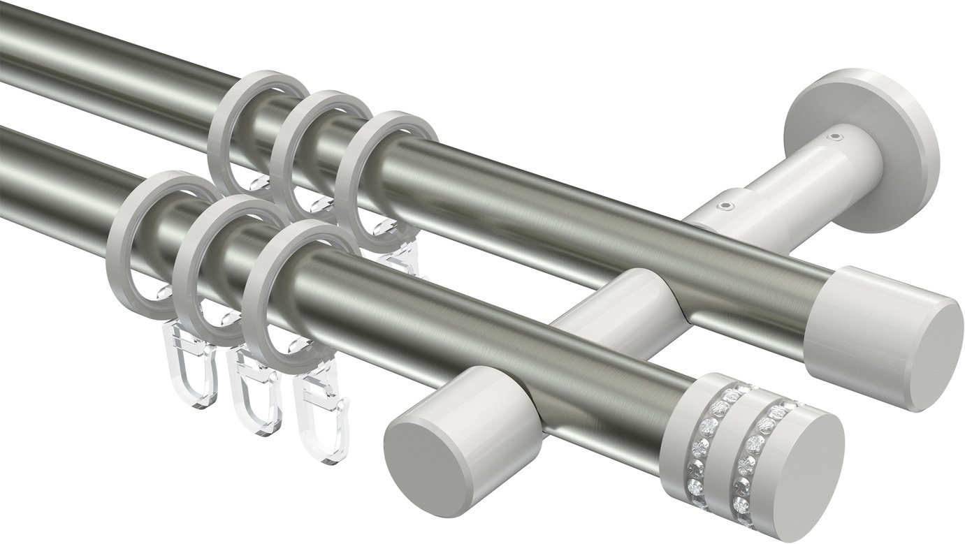 Gardinenstangen aus Metall in 20 mm Ø, 2-läufig, Modell PRESTIGE - Estana Edelstahl-Optik / Weiß