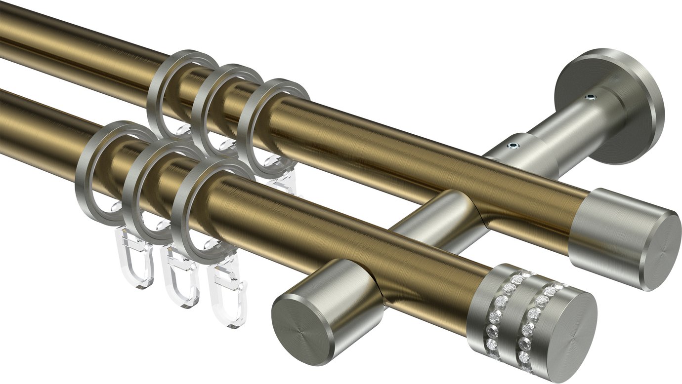 Informationen zu Gardinenstange Metall 20 mm Ø 2-läufig PRESTIGE - Estana Messing Antik / Edelstahl-Optik: