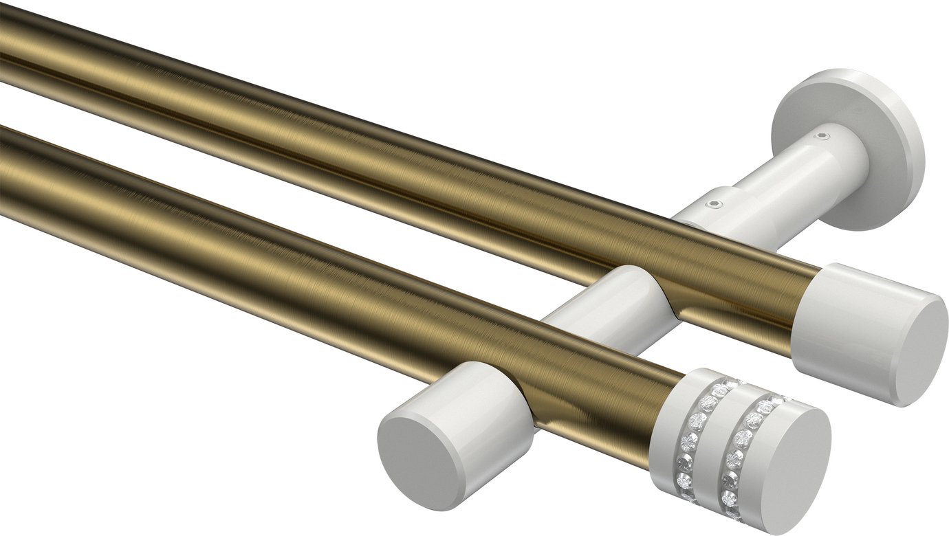 Informationen zu Gardinenstange Metall 20 mm Ø 2-läufig PRESTIGE - Estana Messing Antik / Weiß (ohne Ringe):