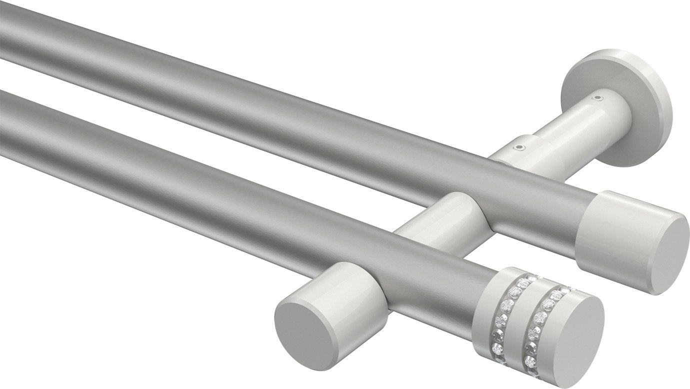 Informationen zu Gardinenstange Metall 20 mm Ø 2-läufig PRESTIGE - Estana Silbergrau / Weiß (ohne Ringe):